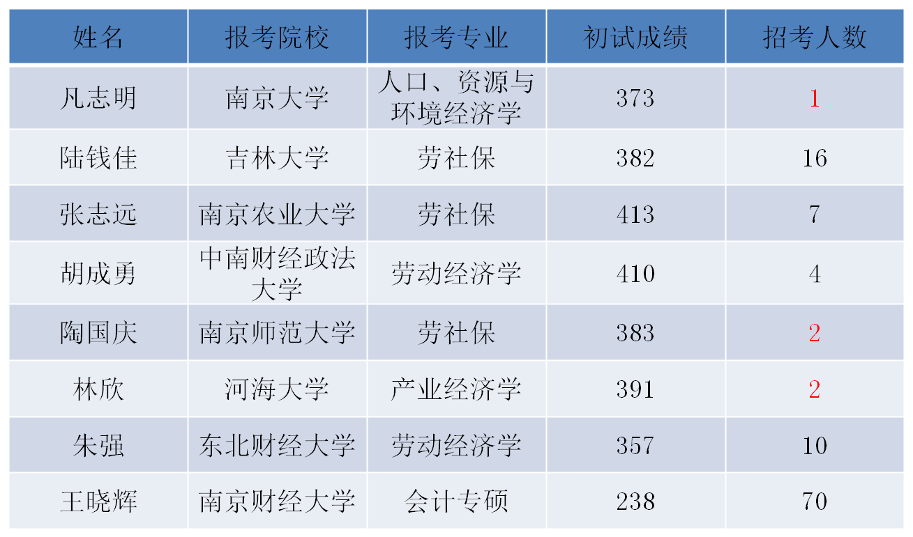 2015级劳动与社会保障专业考研录取情况汇总表