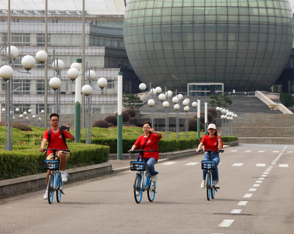 此次活动中,参与同学被分成10组,每组骑行520米,按大三、大二、大一的顺序进行接力。工作人员讲解完骑行路线和安全事项后,随着一声哨响,骑行正式开始。车轮滚滚,风声沙沙,链条吱呀,迎着缕缕微风,同学们欢快地骑起来。每到一个地标建筑,大家就停下来,拿出精心准备的手牌与其合影,和南财一起留下爱的印记。“哎?我好像都没来过这里!”“南财原来还有那么好看的地方吗?”大家流连于校园中,在不同的地方打卡拍照,待到第十组同学完成最后一段路程,此次骑行的总距离定格在了5.20公里。南财大的一花一草、一树一叶都在骑行的旅途中印在了同学们的心里,一场爱的表白拉近了大家同南财的距离,联系了大家同南财的纽带,520的浓浓爱校情在南财绽放开。