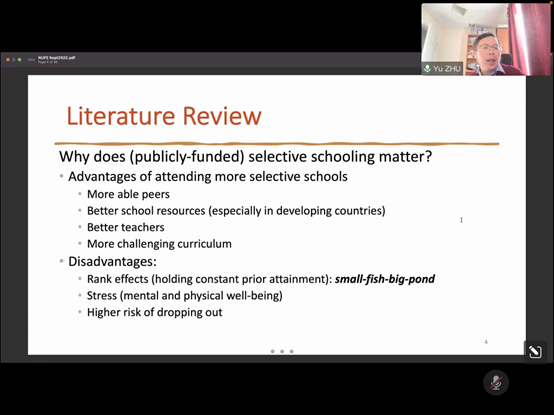 客座教授,“家庭与经济问题杂志”(Journal of Family and Economic Issues)编委,苏格兰经济学会理事朱宇教授在线作了题为“Does It Pay to Attend More Selective High School?Evidence from China”的讲座。乐游棋牌