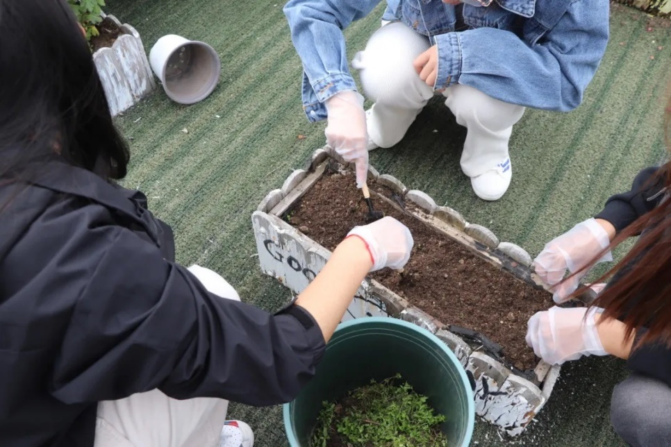 学生会组织于4月20日在专二五楼草坪开展菜苗种植活动。