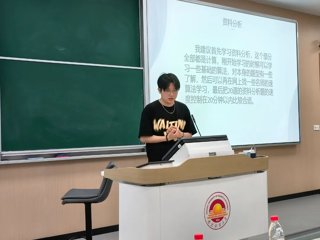 邀请了公事管2001林昕、劳社保2001甘也竣枫、房地产2001程习涵三位优秀的同学进行经验分享。他们根据自身实际情况,为同学们分享了自己的“独家秘笈”,同学们听完后受益匪浅。