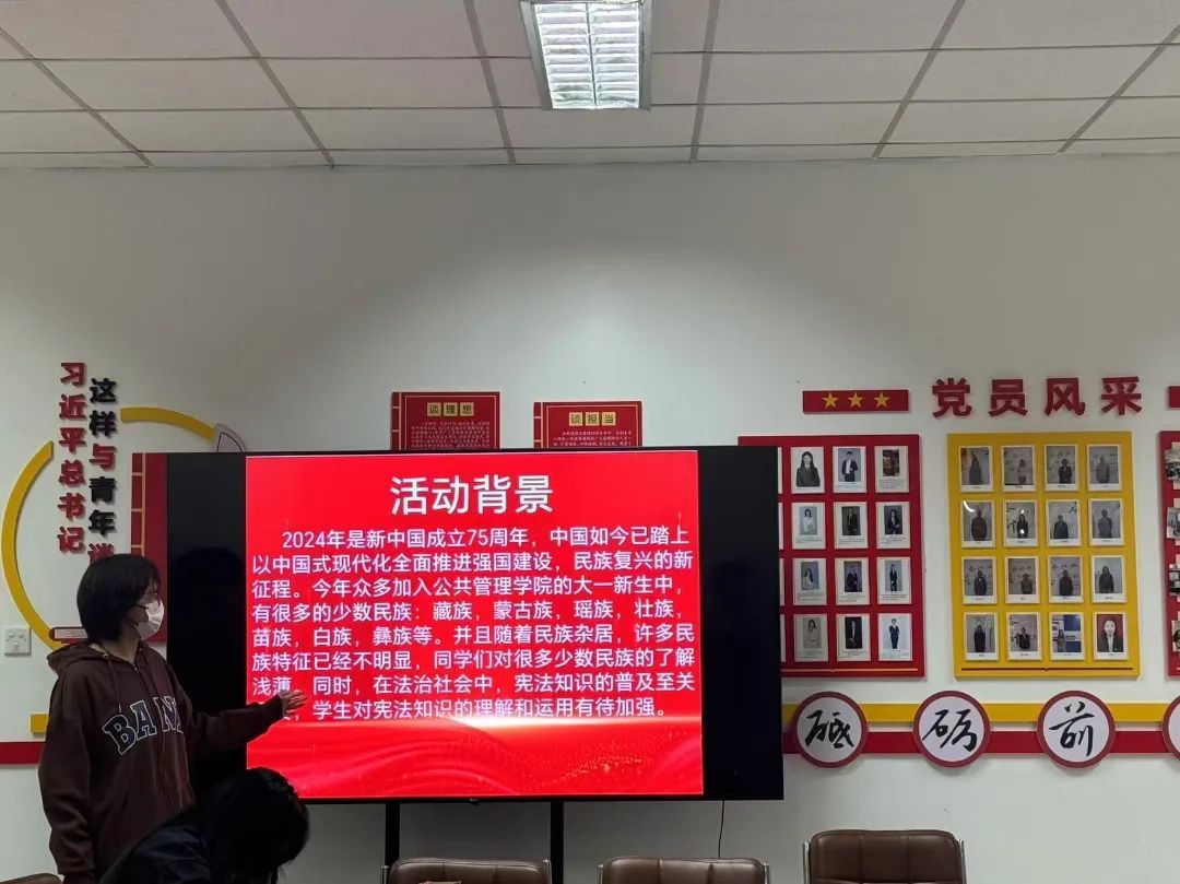 举办了一场别开生面的民族知识问答讲座。在此次活动中,主讲同学先是向大家讲解了此次民族活动举办的背景和意义,同学们了解到了新生同伴中的民族多样化,也认识到了国家对民族团结的重视以及了解不同民族文化的重要性。