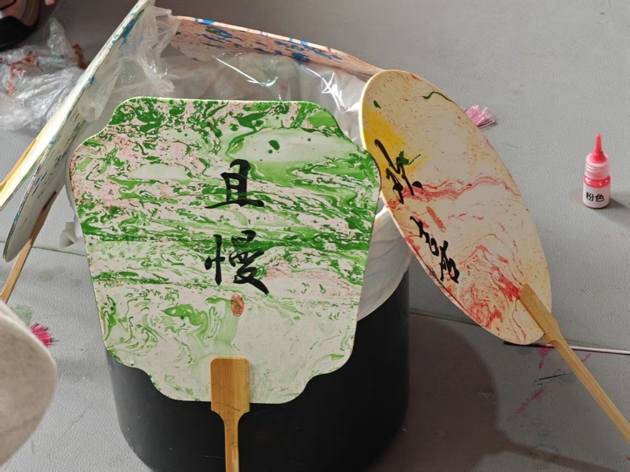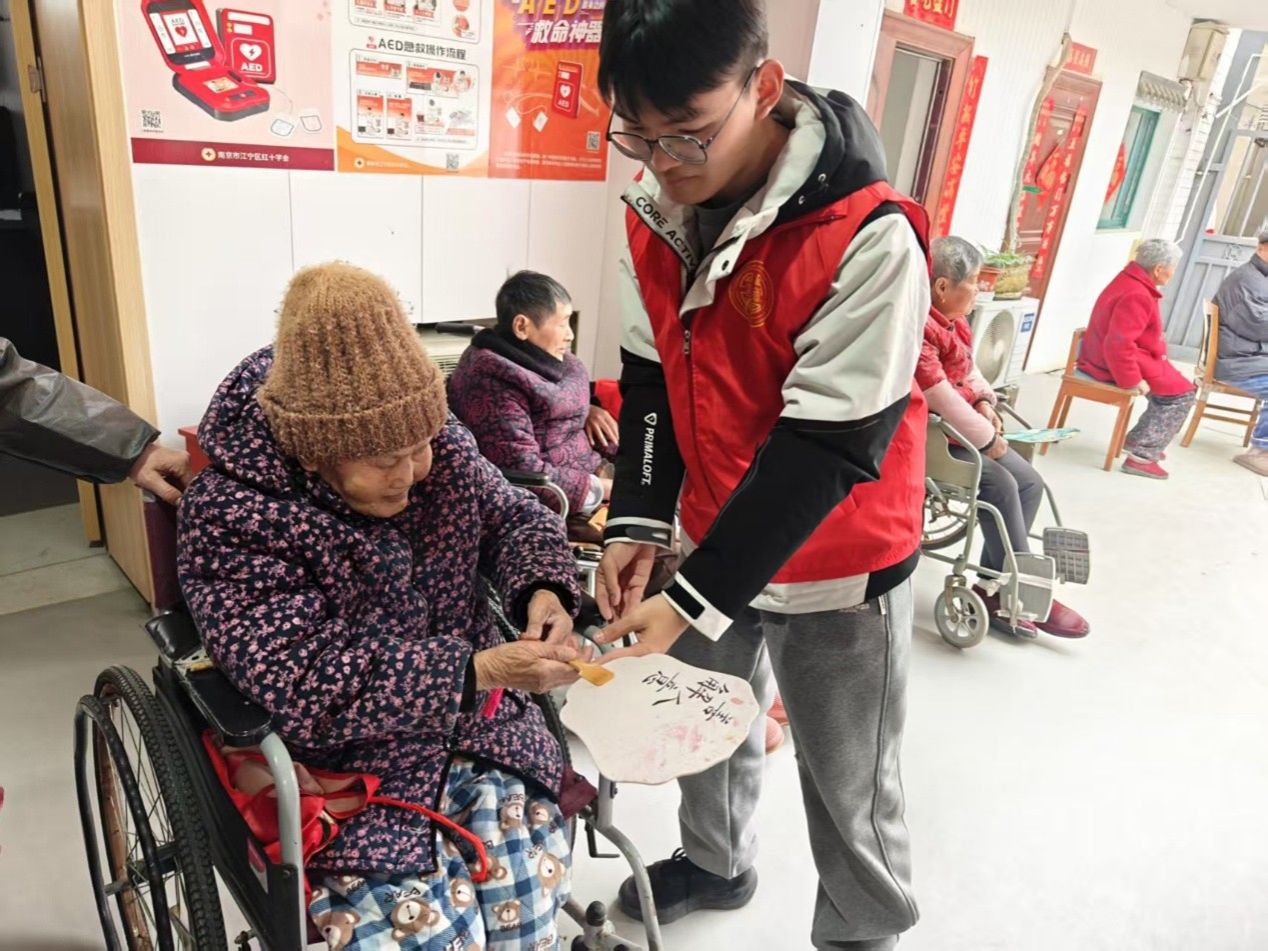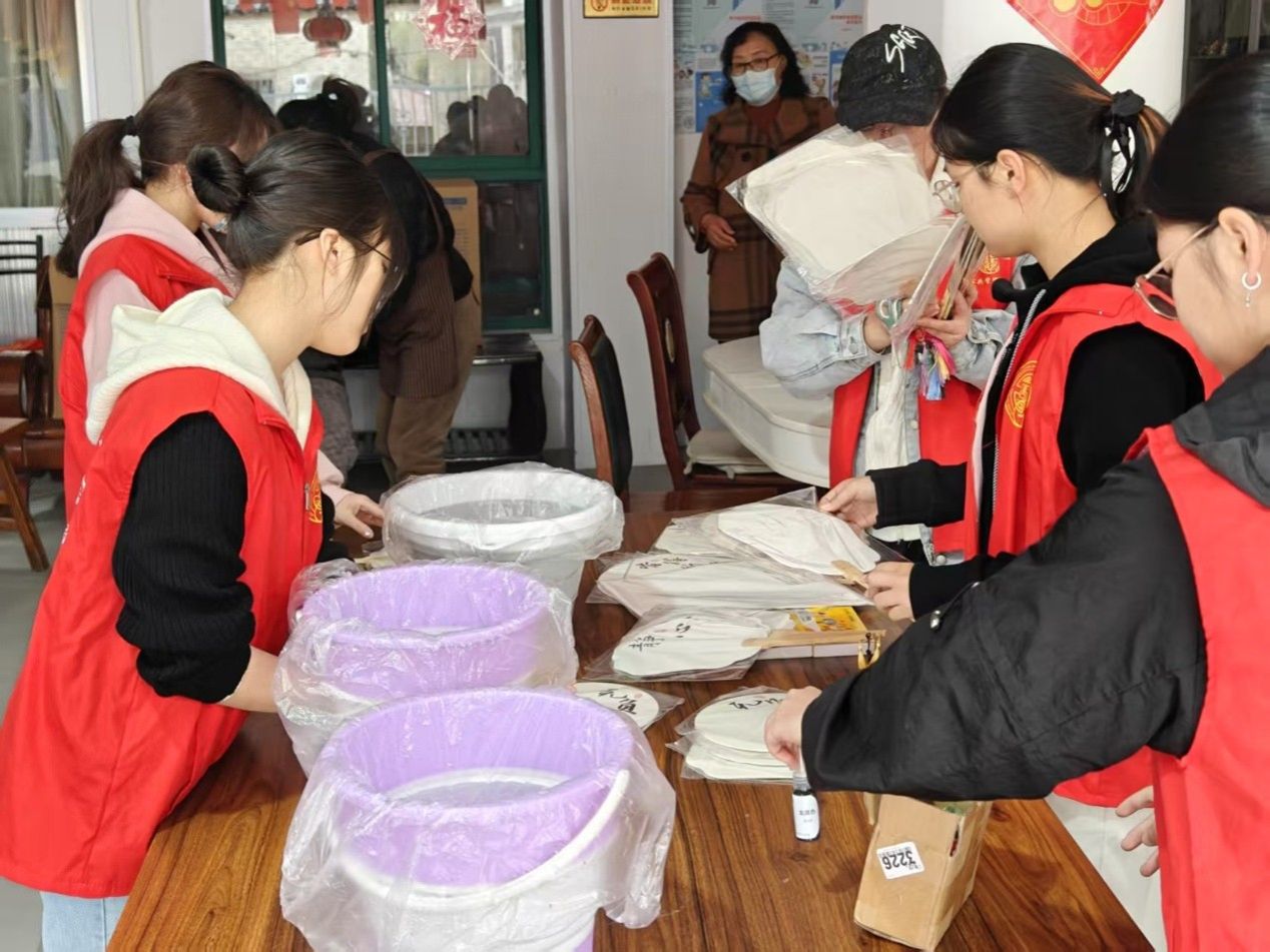 活动当天,志愿者早早抵达养老院整理物资。老人与年轻人们齐坐一堂,在一片欢声笑语中开始了活动。漆扇制作颇有讲究,从调色到上漆,动作需一气呵成,中途不宜长时间停顿。漆扇不仅是传统工艺的载体,更是连接两代人的情感纽带。做漆扇的环节结束后,志愿者将亲手制作的漆扇赠予老人,扇面上悦动的春色,映照出彼此的笑容。