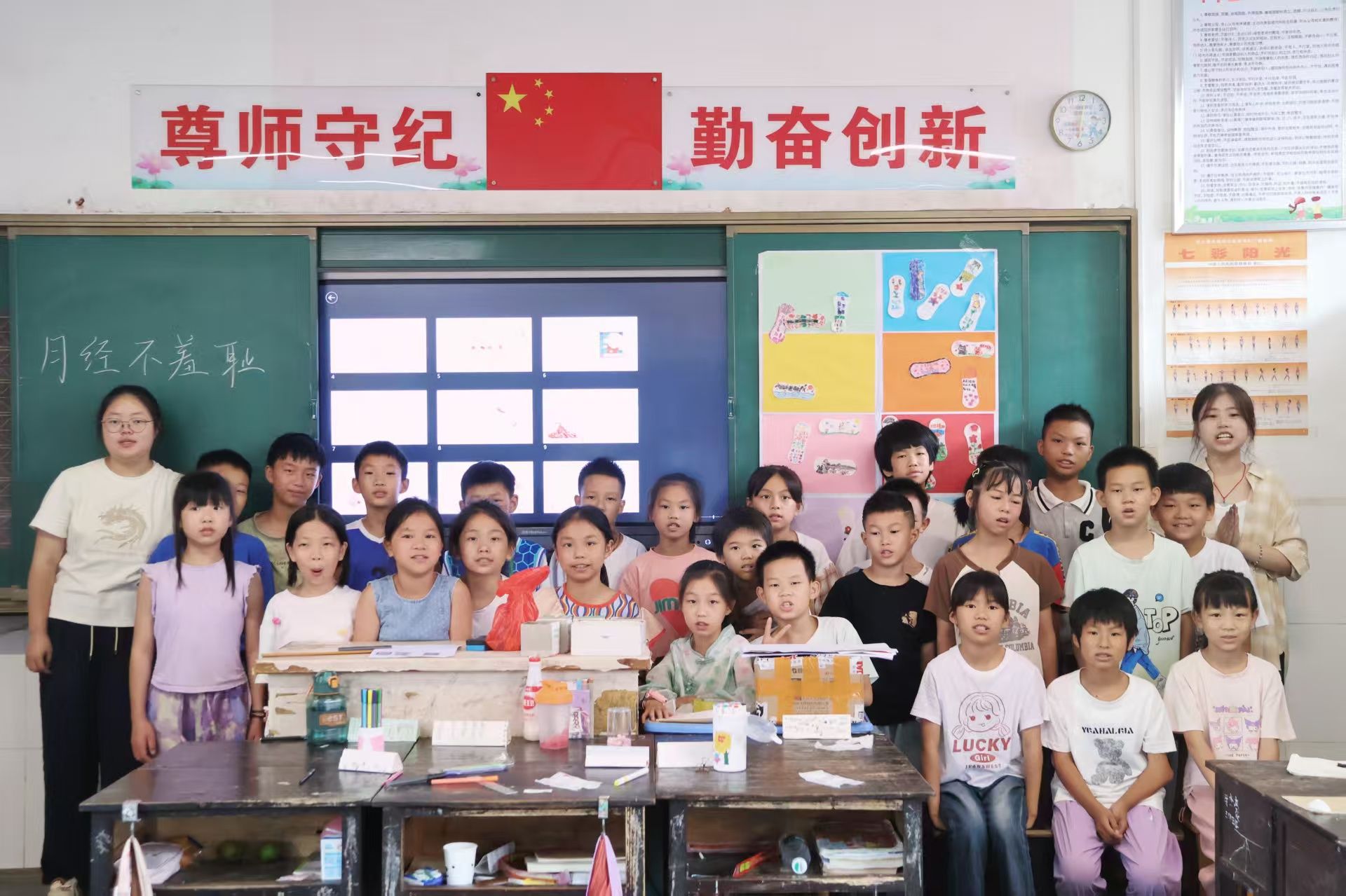 "月经是月亮送给女孩的礼物",在高年级有一个个天真烂漫的笑脸的教室里,小雪老师正用温柔的比喻化解着青春期敏感话题。课程设计遵循"认知-理解-接纳"逻辑:“我的身体会说话”通过器官拼图游戏学习生理结构;“月经不羞耻”邀请孩子们在卫生巾上创作出自己的作品;“花开应有时”则用植物生长类比,探讨情感萌动的自然属性。当男孩女孩们共同完成"性别奥秘解密卡",当"性教育羞耻箱"里塞满被丢弃的偏见纸条,科学的阳光终于照进那些曾被阴影笼罩的角落。