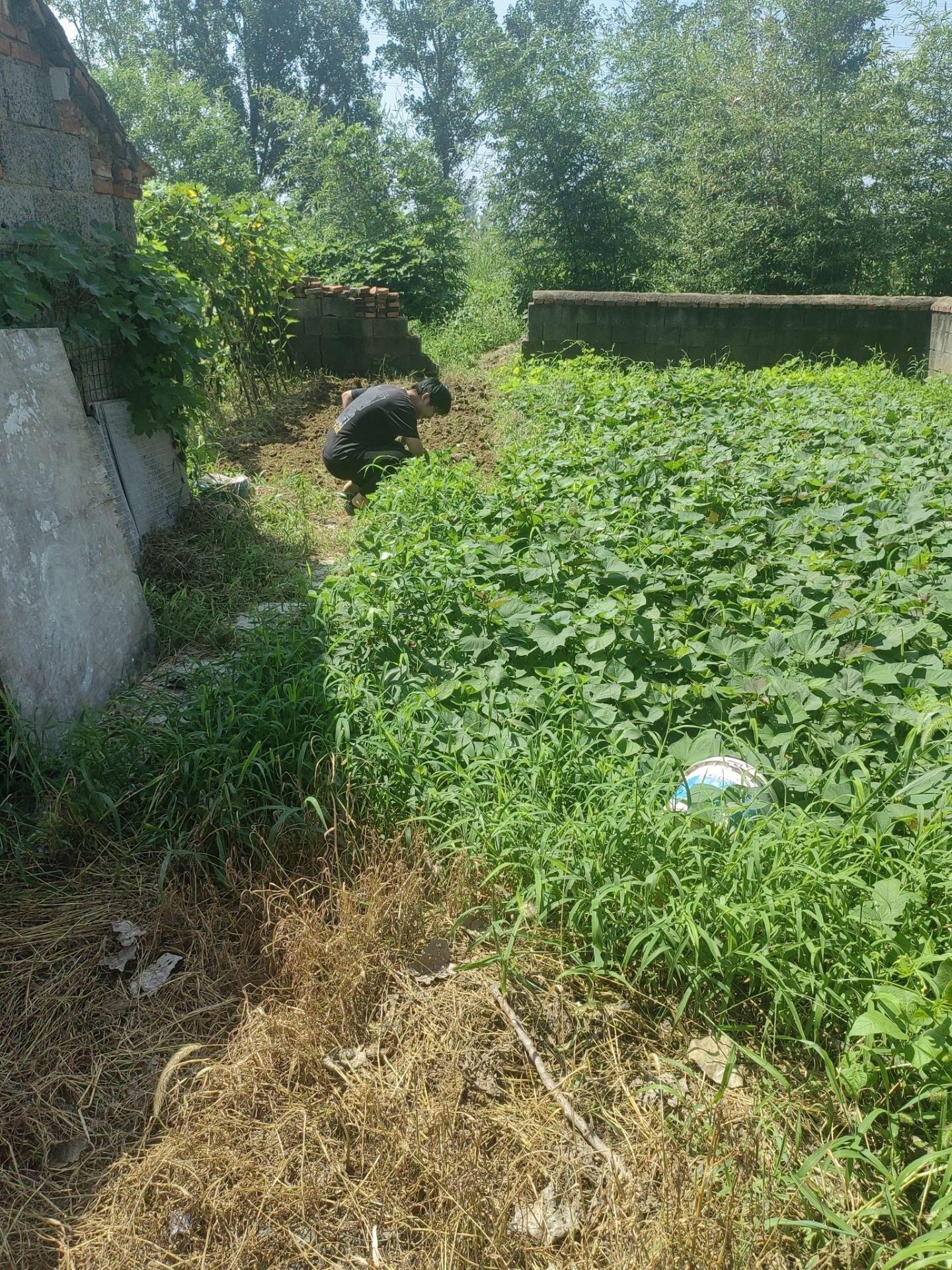连云港石榴街道:聚焦“美丽乡村”建设,队员柴遇春拿起工具参与“美丽菜园”示范点打造,通过请教当地种菜能手获得相关经验,对菜地进行翻地修整和除草,给下一季蔬菜预留下空间和营养。