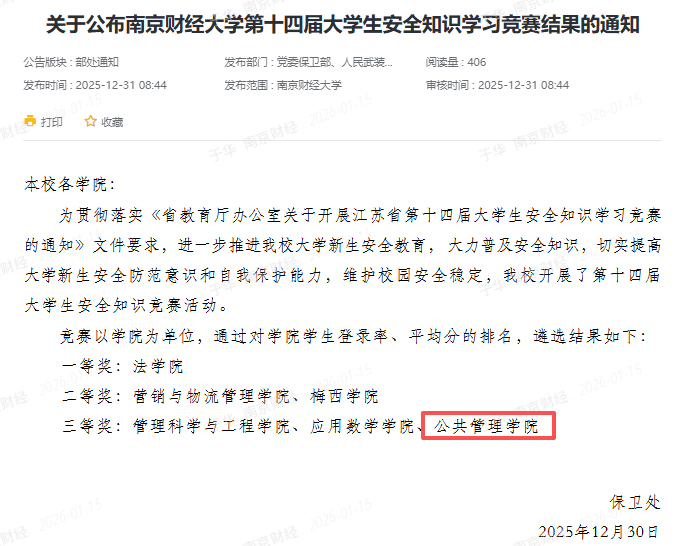 通过参与此次竞赛,不仅提升了同学们的安全防范意识,也为构建平安校园贡献了力量。 乐游棋牌 将以此次获奖为契机,继续加强安全教育工作,切实提升学生安全防范意识与自我保护能力,为平安校园建设贡献更多公管力量。