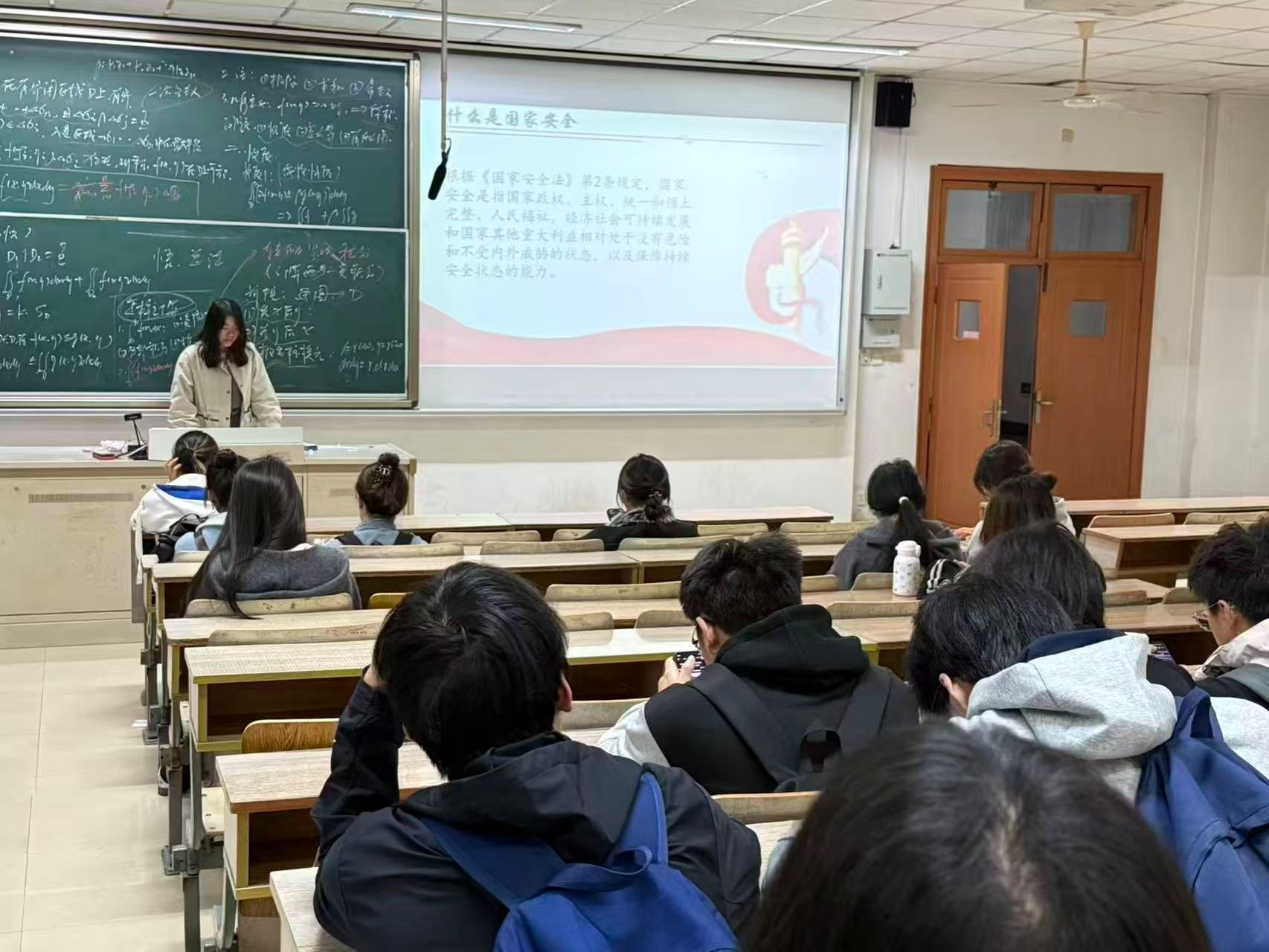 为深化学习效果,提升同学们的安全知识储备与应急防范能力,班级同步开展国家安全知识专题讲座与互动问答活动。班委提前搜集整理安全知识素材,邀请班级学习委员结合专业所学,从公共管理视角解读经济安全与校园安全的关联点;同时同学分享真实案例与防护技巧。知识讲座环节,老师结合当前国际国内安全形势,剖析网络舆论对政治安全的影响、经济风险对大学生群体的渗透路径;互动问答环节,同学们围绕日常上网规范、宿舍安全管理、校外兼职防骗等问题积极交流,主动提出日常遇到的安全困惑,在轻松活跃的氛围中,全面掌握安全防范技巧与自我保护方法,切实将安全知识内化于心、外化于行。