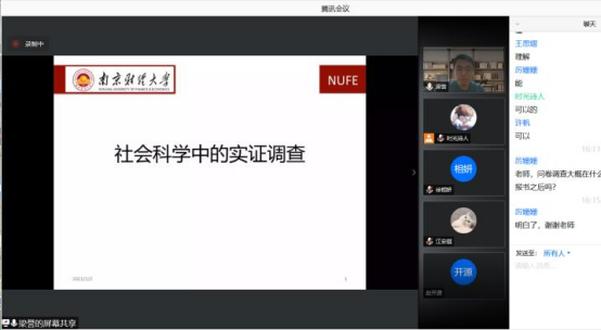 2021年2月2日下午,梁誉老师以“社会科学中的实证调查”为主题,首先介绍了现代社会调查研究的发展,以及中国的社会调查总体现状;其次从社会科学研究的设计为切入点,介绍了研究的类型、资料收集的方法;随后从具体操作层面重点讲解了问卷法,包括调查问卷的结构、问卷设计的原则和标准、问题的设计、答案的设计要求、问卷设计的步骤等,以及访问法,包括结构式访问和无结构式访问的程序与技巧、注意事项;最后详细解答了同学们的相关疑问。