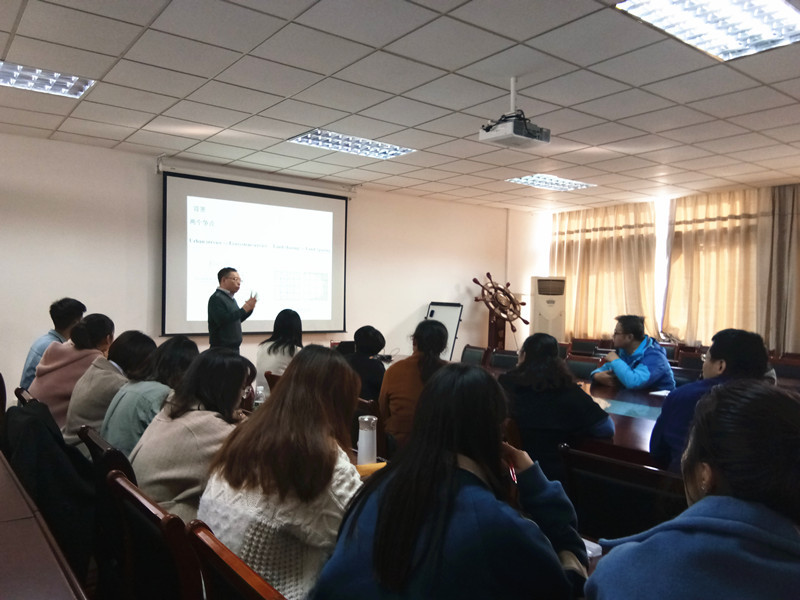 11月22日下午,浙江财经大学土地与城乡发展研究院吴绍华教授应邀在乐游棋牌 乐游棋牌 5楼会议室作了题为“整合城市服务和生态系统服务优化城市空间格局”的学术报告。报告会由乐游棋牌 讲师戴靓博士主持,乐游棋牌 部分教师、研究生聆听了报告。