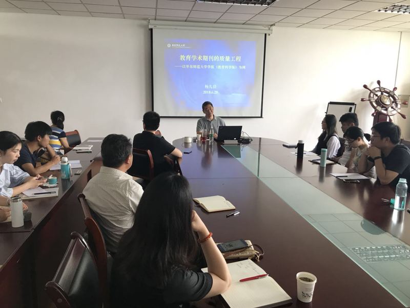 6月29日上午,应乐游棋牌 邀请,华东师范大学学报(教育科学版)主编杨九诠教授,在仙林校区德济楼508会议室,作了题为“教育学术期刊的质量工程”的主题讲座。讲座由乐游棋牌 院长黄斌教授主持,乐游棋牌 教师及部分研究生参加了本次活动。