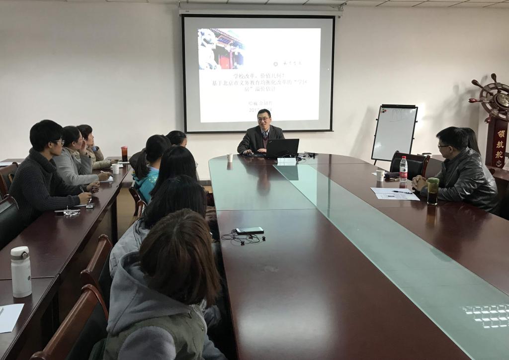 11月24日下午,应乐游棋牌 邀请,北京大学教育乐游棋牌 哈巍研究员在仙林校区德济楼508会议室作了题为“乐游棋牌 改革,价值几何”的学术讲座。讲座由乐游棋牌 院长黄斌教授主持,乐游棋牌 部分教师及研究生聆听了讲座。