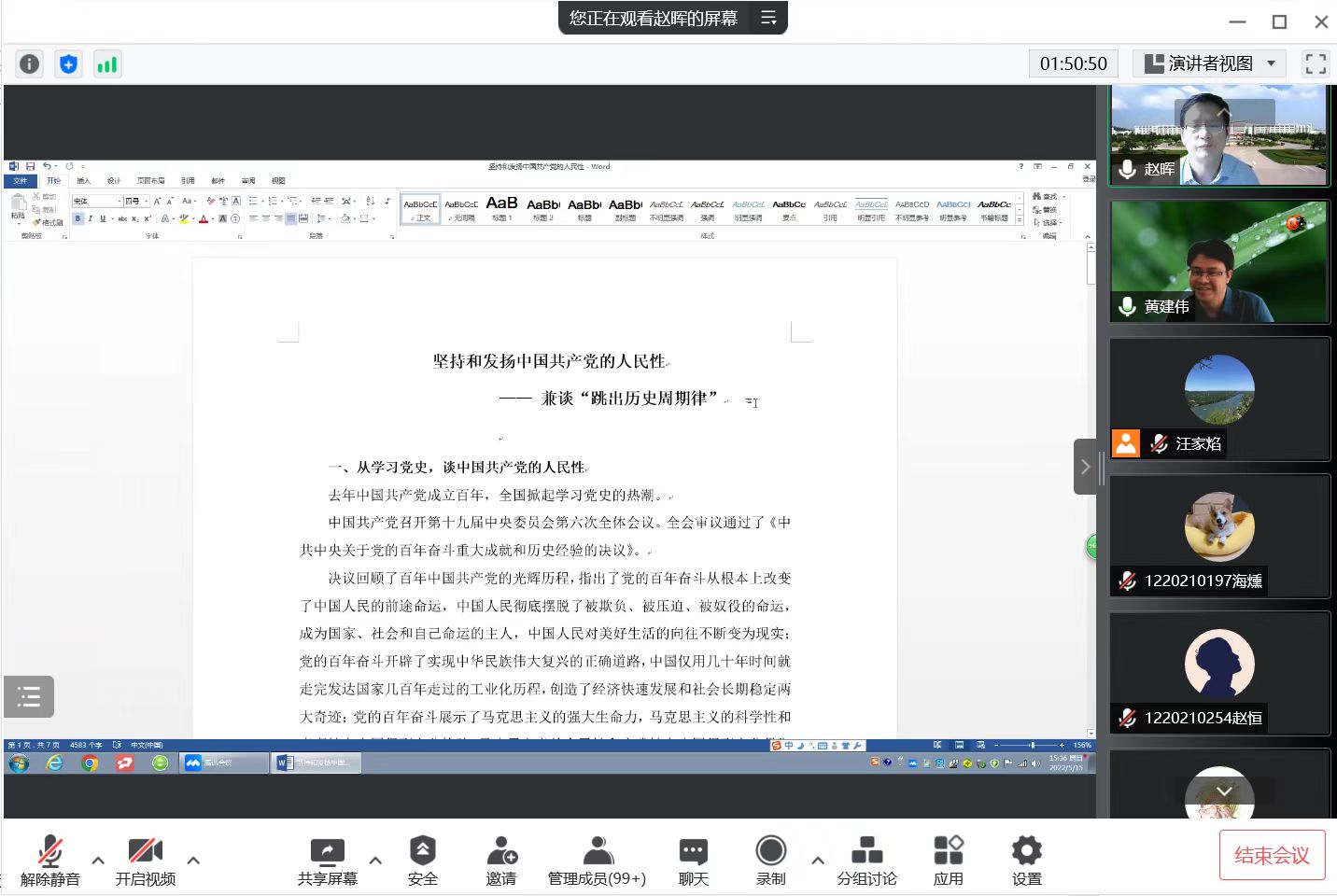 MPA中心主任赵晖教授在线作了题为“坚持和发扬中国共产党的人民性——兼谈‘跳出历史周期律’”的讲座。乐游棋牌