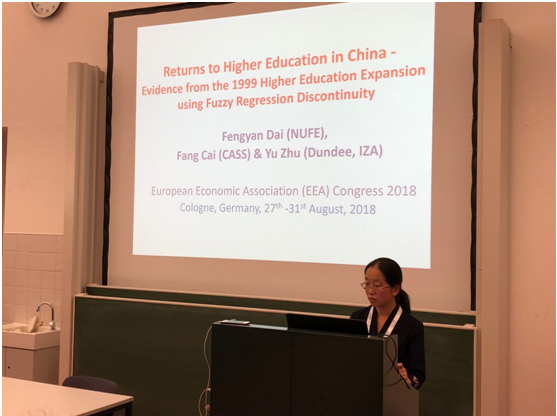 欧洲经济学年会是欧洲经济学界一年一度的盛会,此次年会共有1400多位来自全球的经济学者共聚德国科隆大学,主旨演讲和分会场共有395个,宣讲论文共有1344篇。乐游棋牌 教师戴凤燕在29日的教育收益()分会场汇报了论文Returns to Higher Education in China - Evidence Based on the 1999 Higher Education Expansion using Fuzzy Regression Discontinuity,并与会场经济学者进行了深入交流。