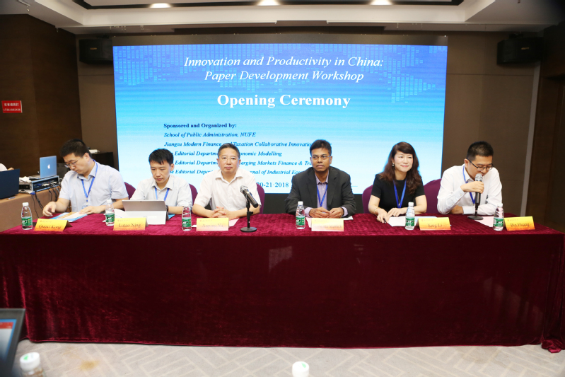 7月21日,由《Economic Modelling》和《Emerging Markets Finance and Trade》编辑部主办,乐游棋牌·中文官网 、江苏现代财税治理协同创新中心以及《产业经济研究》编辑部共同承办的“中国创新与生产力国际学术论文研讨会”在乐游棋牌 召开。乐游棋牌 党委常委、副校长俞安平教授、《Economic Modelling》主编Sushanta Malick教授、副主编Lutao Ning教授,乐游棋牌 科研处处长李杏教授、《产业经济研究》编辑部孔群喜主任,以及《Emerging Markets Finance and Trade》期刊三位客座编辑出席了开幕式。有来自伦敦玛丽王后大学、英国国家经济与社会科学研究院、香港中文大学、北京大学、浙江大学、中国人民大学、南京大学、中山大学、中央财经大学、上海财经大学等近30所高校的专家学者,以及乐游棋牌 部分教师、研究生参加了此次研讨会。