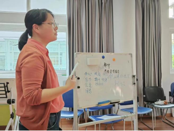 热身环节结束后,吴垠老师引导大家进入核心活动环节。核心环节主要包括“情绪蛋糕”和“情绪遥控器”两个部分。在“情绪蛋糕”部分,每位成员画一个情绪蛋糕,在情绪蛋糕上表明自己一周内的情绪分布以及所占的时间百分比,在小组内分享和交流绘画感受,在大组内分享情绪蛋糕给自己的生活带来了什么影响。在“情绪遥控器”环节,每位成员一张《情绪遥控器》表格单,表格上设有“问题情景”、“情绪脸谱”和“我思我想”三个部分,参与成员根据三者之间的关系找出非理性认知并且列出正确的、理智的思维方式。小组成员自行填写空白表格并进行小组内讨论。