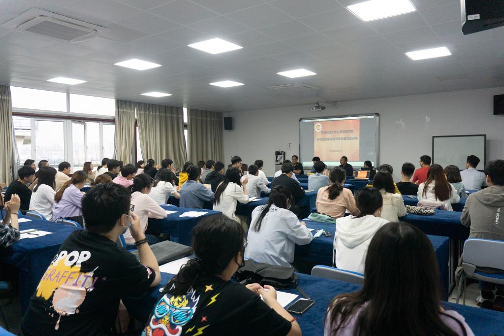 2021526日,乐游棋牌·中文官网 研究生科学道德与学风教育宣讲会在德济楼502隆重召开,参加会议的有乐游棋牌 党委书记胡永远、乐游棋牌 院长黄斌、乐游棋牌 党委副书记张荣霞、乐游棋牌 副院长王永生、乐游棋牌 研究生秘书与研究生辅导员,以及乐游棋牌 全体研究生,其中学硕采用线下的方式参加了会议,专硕(MPA学生)通过腾讯会议线上的方式同步参加了会议。会议由乐游棋牌 王永生副院长主持。