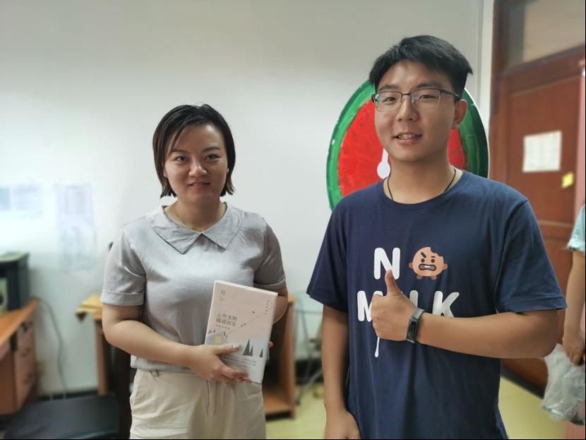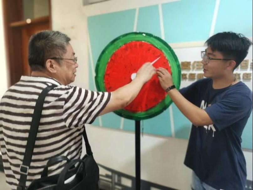 真心话、彩虹夸夸、“黄金屋”、爱要大声唱......同学们带着写有不同祝福的“西瓜”转盘来到老师们的办公室,看到这些特别的祝愿形式,老师们也不禁好奇了起来,带着期待,金志云老师抽到了同学们精心排练的一首《童年》,师生往日相处的点滴记忆在歌声中不断涌现,就连平日严肃认真的李小燕在一旁也露出了欣慰的笑容。胡永远书记还获得了本次活动的压轴礼品“心愿兑换券”,这是公管院的同学们为感谢老师们的付出而精心制作的兑换券,希望在力所能及的范围内实现老师们的心愿,通过自己的实际行动来回报老师们的付出,“心愿劵就像同学们的笑脸一样可爱,我的心愿不多,希望同学们能认真学习,不断攀登!”