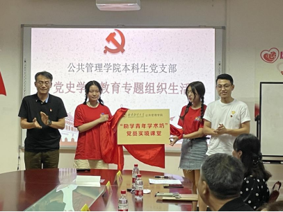 开展第二课堂、实践教学的主要平台。张荣霞副书记汇报了2021年暑期社会实践工作安排。随后李群校长为党员实境课堂揭牌,为暑期社会实践小分队授旗。