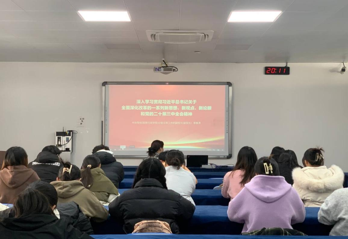 党委副书记孙启介绍了《中共中央关于进一步全面深化改革、推进中国式现代化的决定》的主要内容,涵盖进一步全面深化改革总目标;贯彻的“六个坚持”原则;全面深化改革做出的系统部署等以及党的二十届三中全会对于指引中国未来发展的重大意义。她鼓励全体学生党员要认真学习、深刻理解会议精神,将其内化于心、外化于行,通过自己的实际行动来践行新时代青年的历史使命与责任担当。