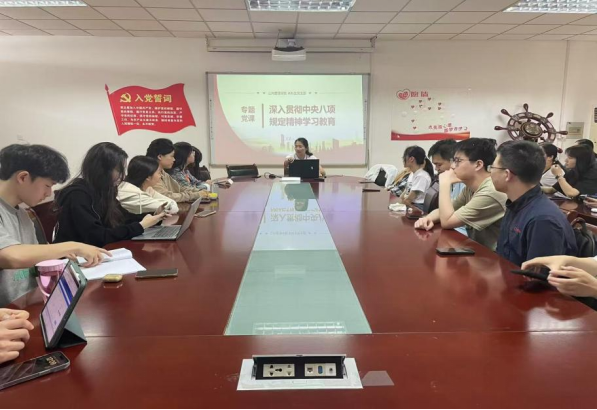 本科生党支部书记高敏在德济楼508会议室为全体支部党员讲授“深入贯彻中央八项规定精神学习教育”专题党课,本科生党支部全体党员参加。
