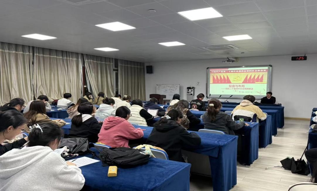 院长、研究生党支部政治辅导员黄建伟教授在德济楼502教室为研究生党支部全体党员讲授题为“复盘与布局——党的二十届四中全会精神解读”的专题党课。研究生党支部全体党员和党的发展对象参加党课学习。